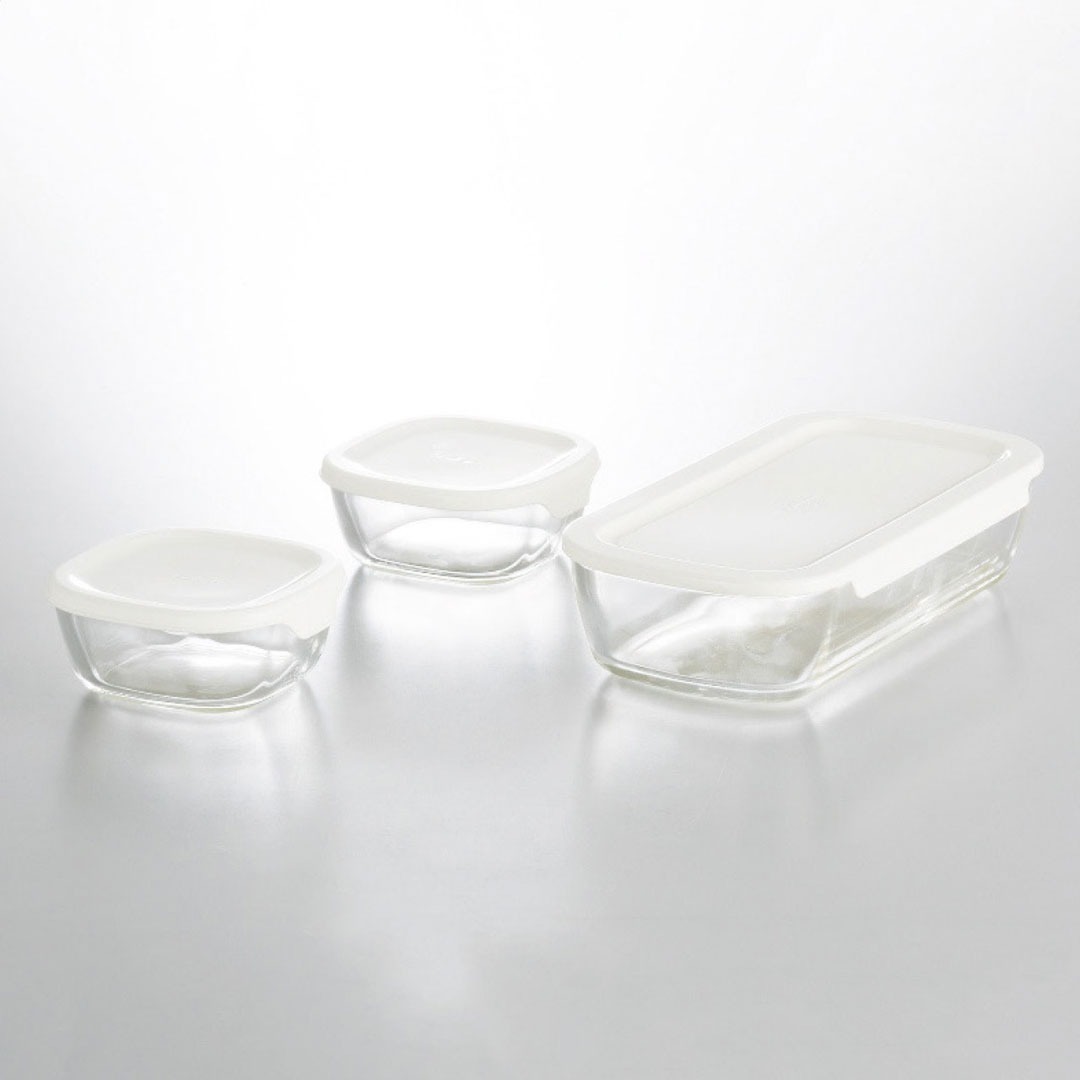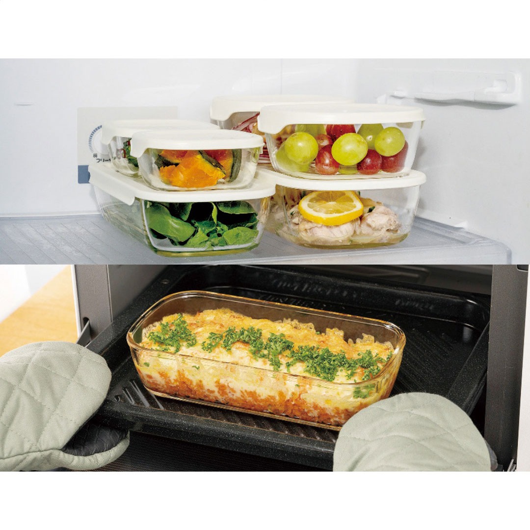 現品サイズ・内容:27×14.5×6.2cm容量1.4l保存容器1個・14.3×13.9×6.2cm容量600ml保存容器2個・本体:耐熱ガラス・フタ:ポリプロピレン・[日本製]