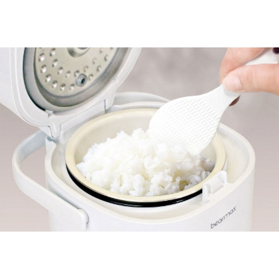 現品サイズ・内容:19.2×20.6×21.2cm・容量0.09~0.45l・本体:ABS樹脂、ポリプロピレン、アルミニウム、スチール、シリコン・内釜:アルミニウム・消費電力:炊飯時300W・1時間あたりの保温消費電力量60Wh・コード長:約1.2m・しゃもじ、計量カップ、レシピブック付・[中国製]