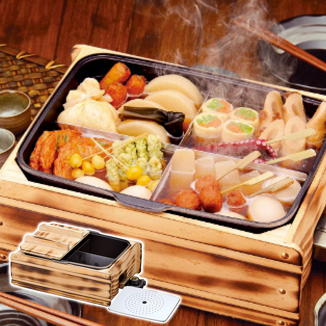 おでん鍋だけでなく、煮る、ゆでる、蒸す、焼く、炒めるの一台5役の優れもの。