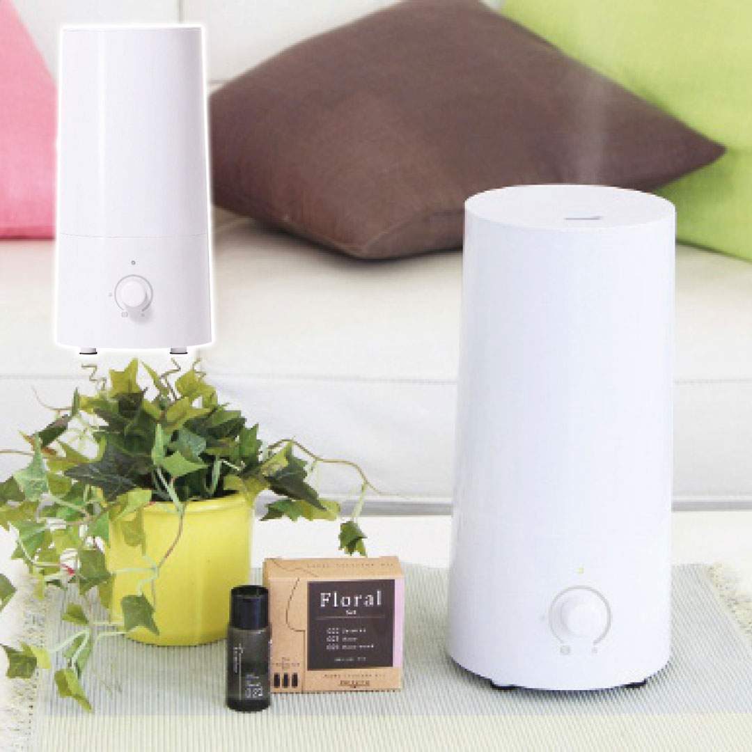 現品サイズ・内容:13.5×15×28cm・本体:ABS樹脂、ポリプロピレン・タンク:ABS樹脂・アロマトレー:ポリプロピレン・タンク容量:1.8l・消費電力:18W・コード長:約1.5m・[中国製]