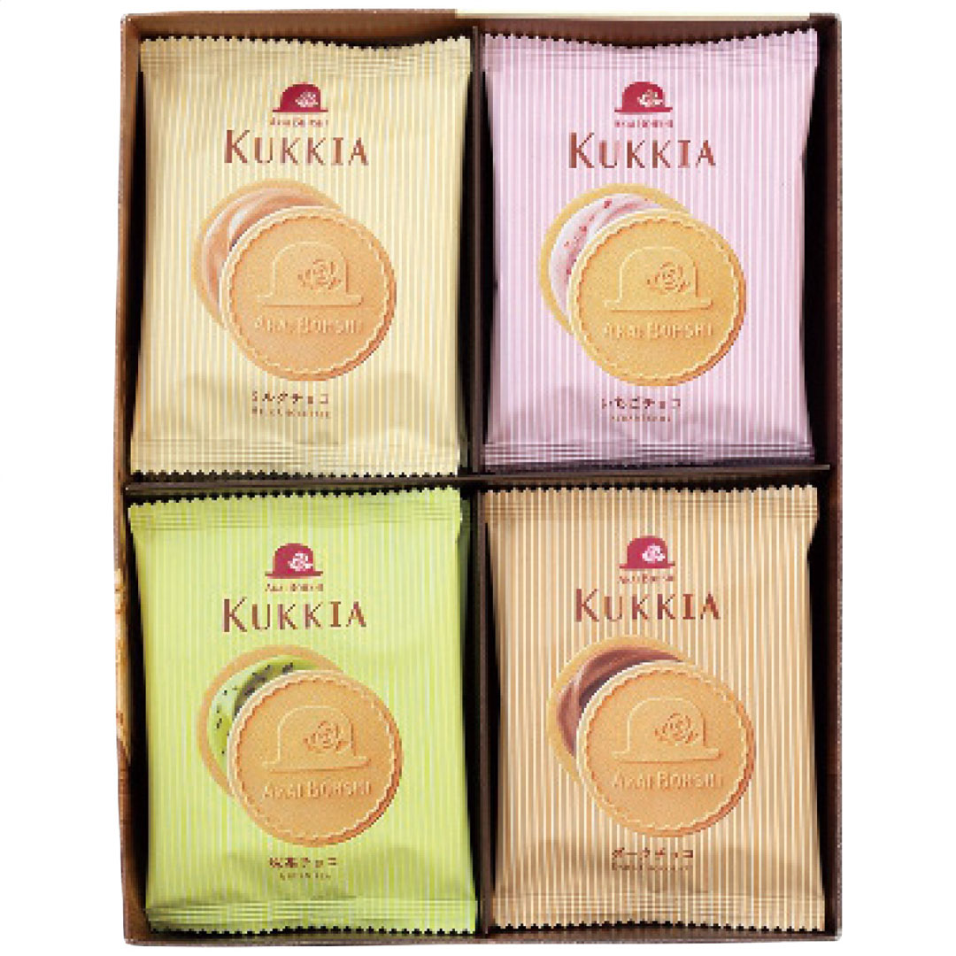 現品サイズ・内容:クッキア(ミルク・ダーク・いちご・抹茶各5枚)