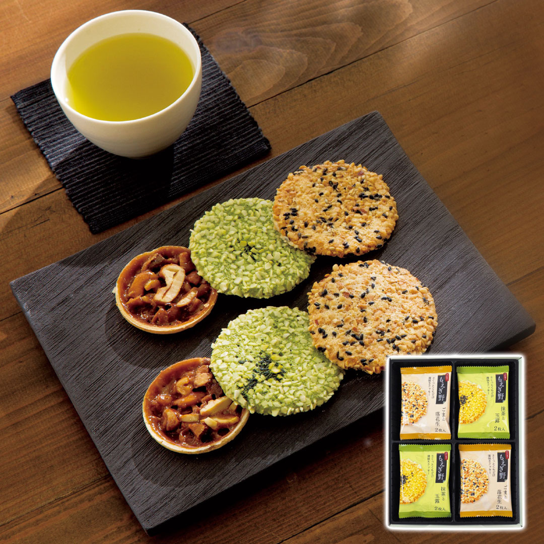 現品サイズ・内容:ごまと落花生・抹茶と玉露各(2枚入×6袋)