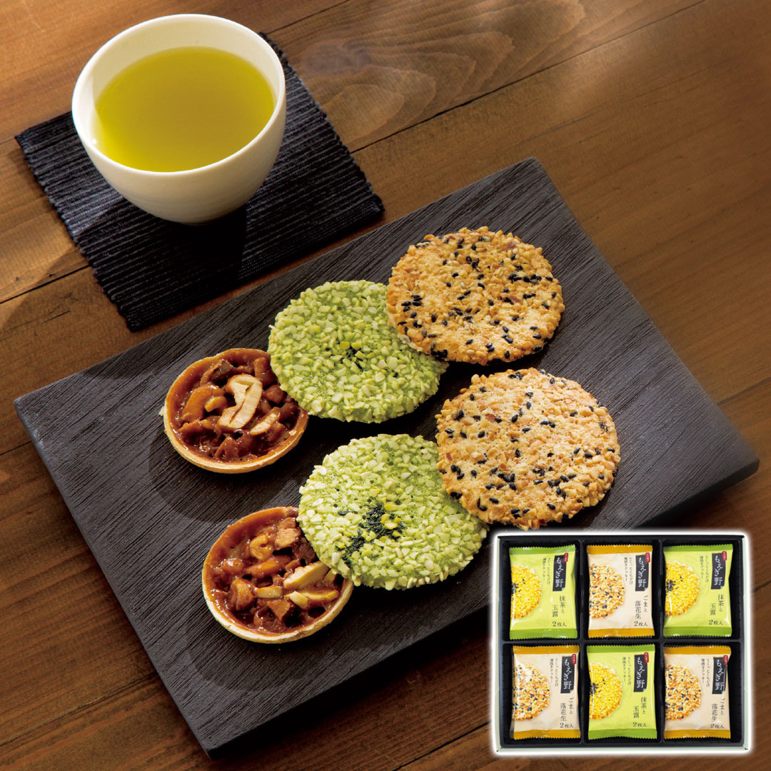 現品サイズ・内容:ごまと落花生・抹茶と玉露各(2枚入×12袋)