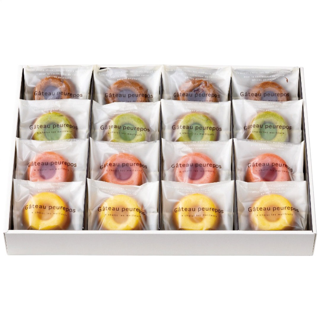 現品サイズ・内容:ガトープルポ(カフェモカ・抹茶・いちご・レモン各4個)