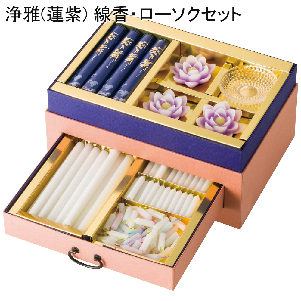 浄雅(蓮紫) 線香・ローソクセット ギフト お返し ご挨拶 お礼 法要 香典返し カメヤマ T9617-00-00 【代引不可】