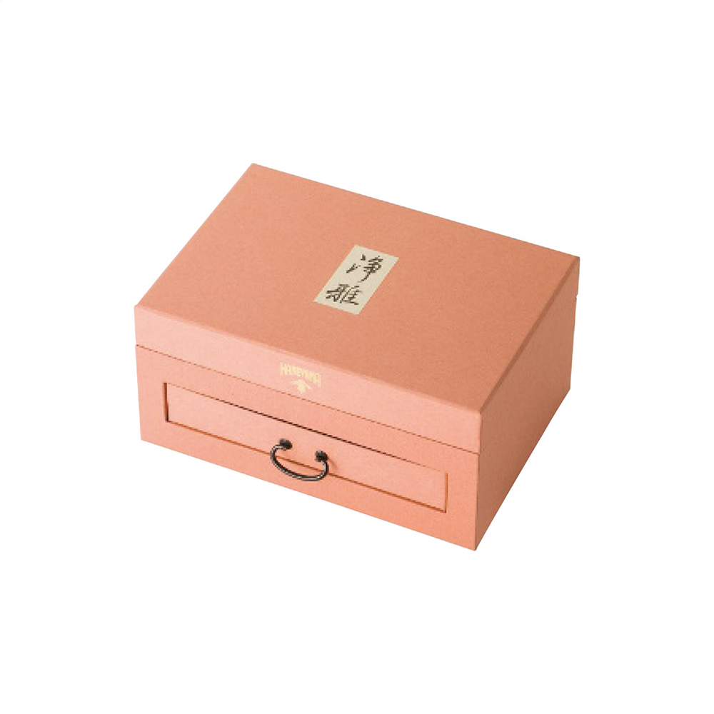 高級感あふれる「貼箱」、引き出しは便利な上下2段組みで使い終わった後も経本や数珠等、お仏壇まわりの小物の収納に重宝します。