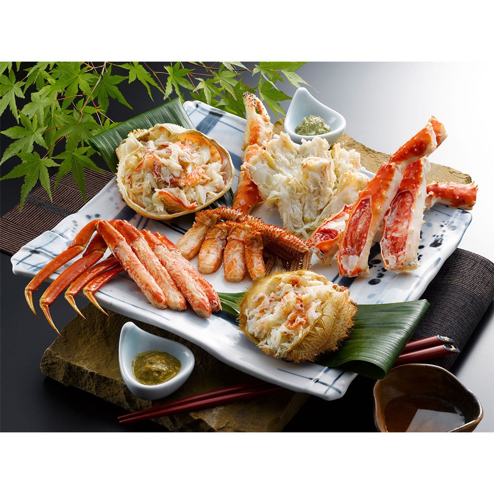 「ずわいがに」はプリプリの身と甘い蟹みそを、「毛がに」は濃厚な身とみそを、「たらばがに」は食べ応え十分な太い脚を存分に味わってください。