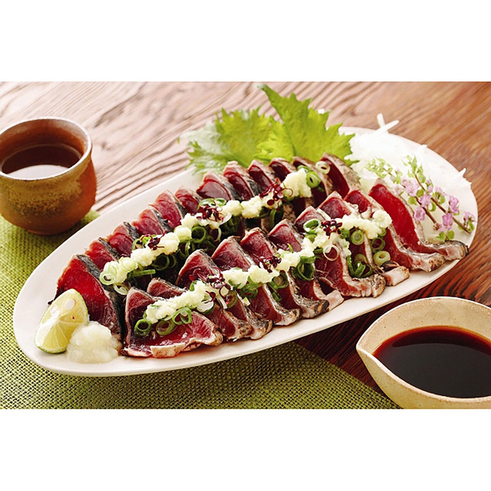 内容量:藁焼き鰹たたき4~5ブロック(550g)、たれ20ml×8パック、薬味(すりおろしにんにく5g、すりおろし生姜8g)×各4パック