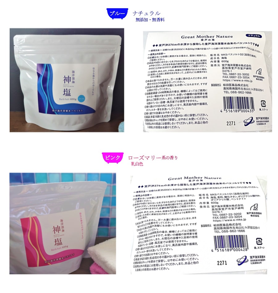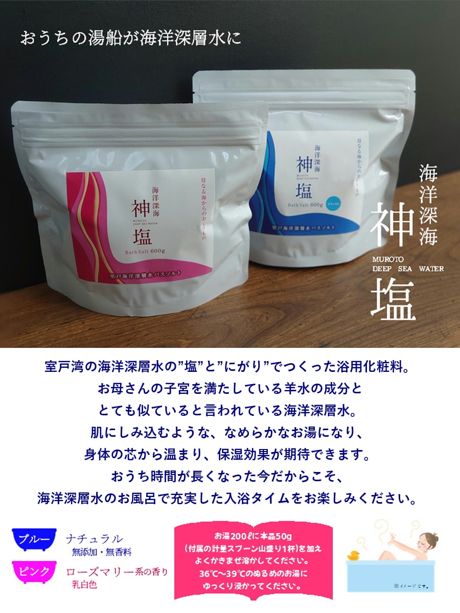 検索キーワード: 国産 海洋深層水由来 バスソルト 浴槽 入浴剤 お風呂 ミネラル バランス なめらか 体の芯から 温め あったかい あったまる 四国 高知 海洋深層水塩 北大西洋北部 グリーンランド沖 二千年 室戸沖 湧き上がる 室戸岬沖 水深374m 取水 海水 濃度15~18% 濃縮 室戸海洋深層水100
