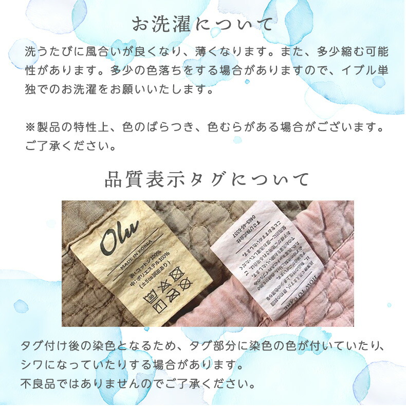 必ず他の衣類と分け、イブル単体で洗濯ネットに入れてお洗濯をお願いいたします。