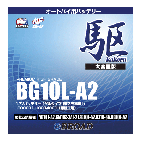 BG10L-A2 二輪用バッテリー 駆 ブロード 6ヵ月補償 1万km補償 バッテリー 大容量 自己放電抑制 12V 互換性 即用式 バイクバッテリー オートバイ用バッテリー アメリカ純正 【代引/同梱不可】