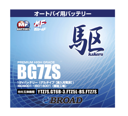BG7ZS 二輪用バッテリー 駆 ブロード 6ヵ月補償 1万km補償 バッテリー 大容量 自己放電抑制 12V 互換性 即用式 バイクバッテリー オートバイ用バッテリー アメリカ純正 【代引/同梱不可】