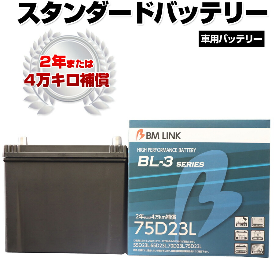 カーバッテリー 75D23L BM LINK BL-3シリーズ スタンダードバッテリー 車用バッテリー メンテナンスフリー 60D23L 65D23L 互換 2年または4万km補償 【代引/同梱不可】