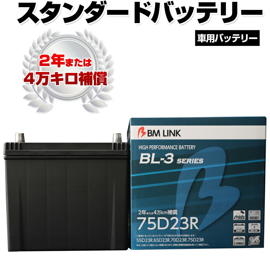 カーバッテリー 75D23R BM LINK BL-3シリーズ スタンダードバッテリー 車用バッテリー メンテナンスフリー 60D23R 65D23R 互換 2年または4万km補償 【代引/同梱不可】