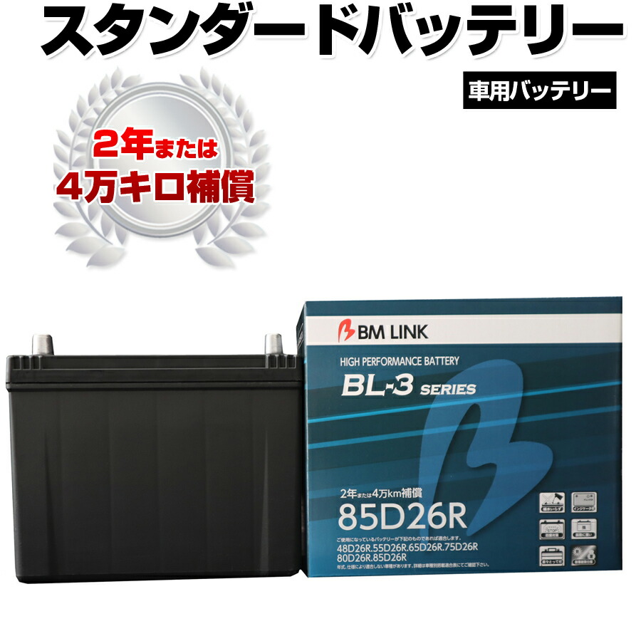カーバッテリー 85D26R BM LINK BL-3シリーズ スタンダードバッテリー 車用バッテリー メンテナンスフリー 65D26R 80D26R 互換 2年または4万km補償 【代引/同梱不可】