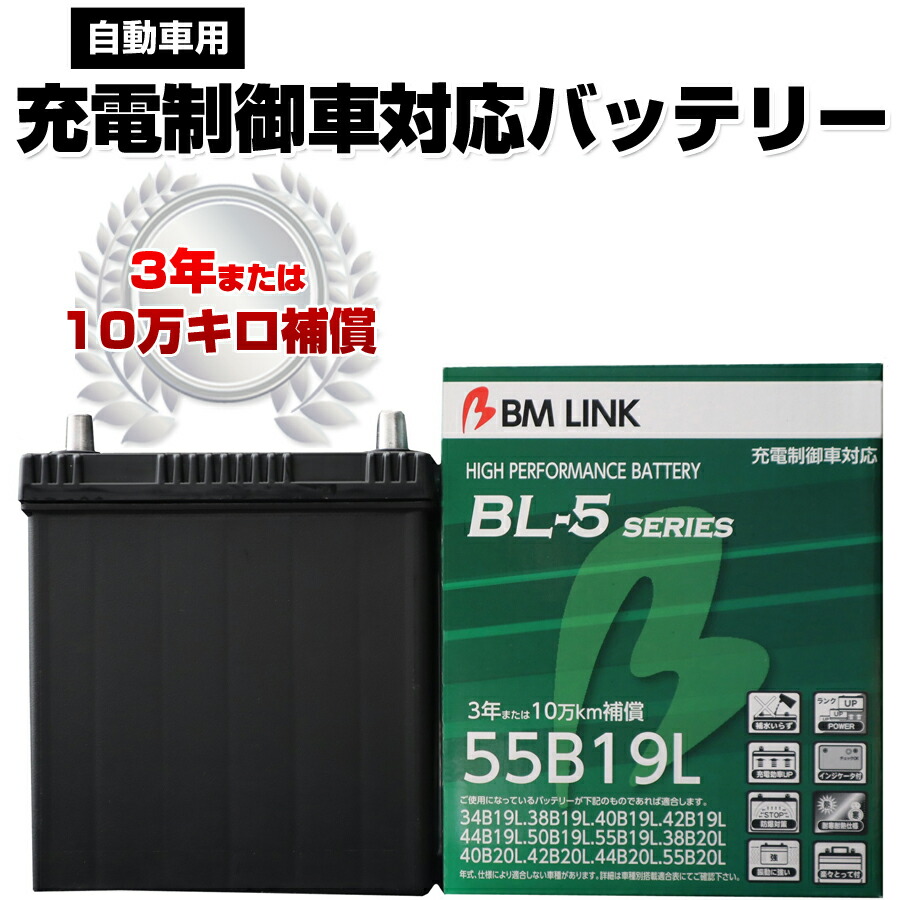 カーバッテリー 55B19L BM LINK BL-5シリーズ 自動車用充電制御車対応バッテリー 車用バッテリー メンテナンスフリー 34B19L 38B19L 互換 3年または10万km補償 【代引/同梱不可】