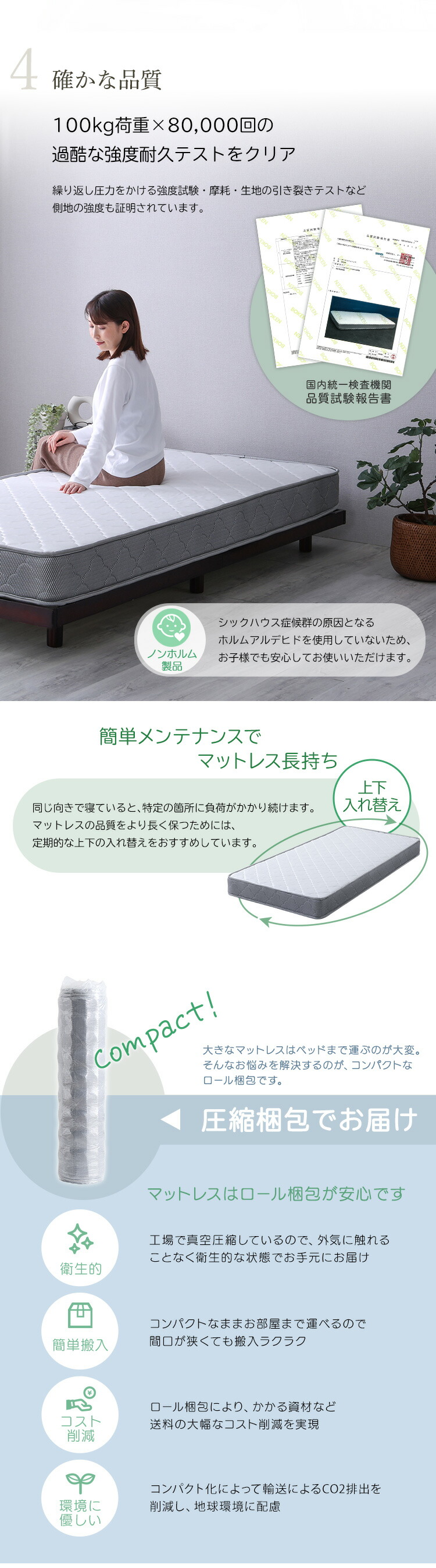 マットレス セミダブル ボンネルコイル 硬め 高反発 【Bonjia-ボンジーア-】 極厚 厚め 丈夫 高反発マットレス 敷き布団 敷布団 ベッドマットレス ノンホルムアルデヒド 布団 寝具 一人暮らし 新生活 【代引不可】[ホワイト]