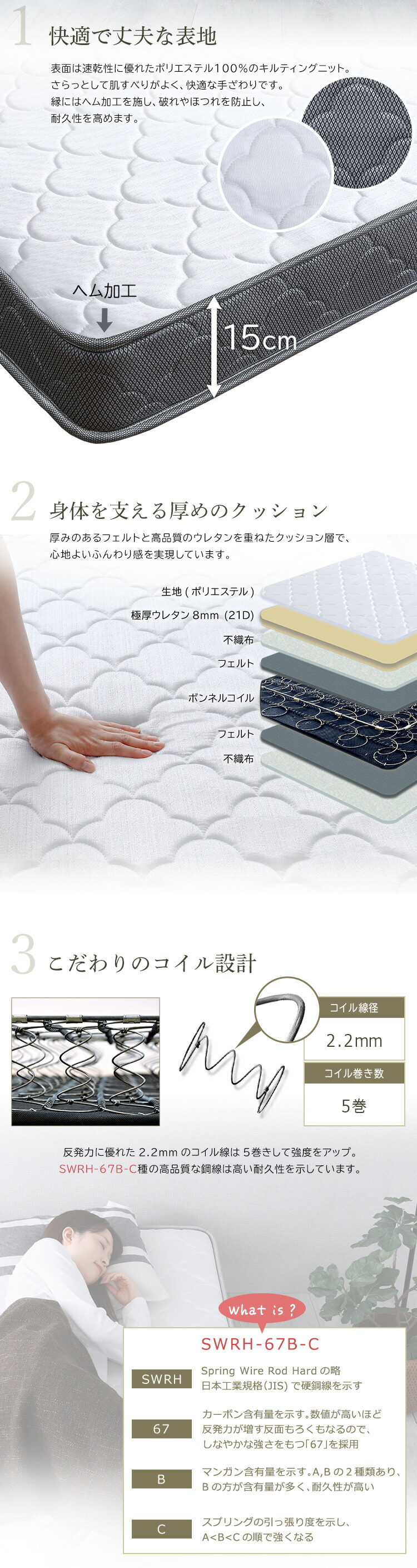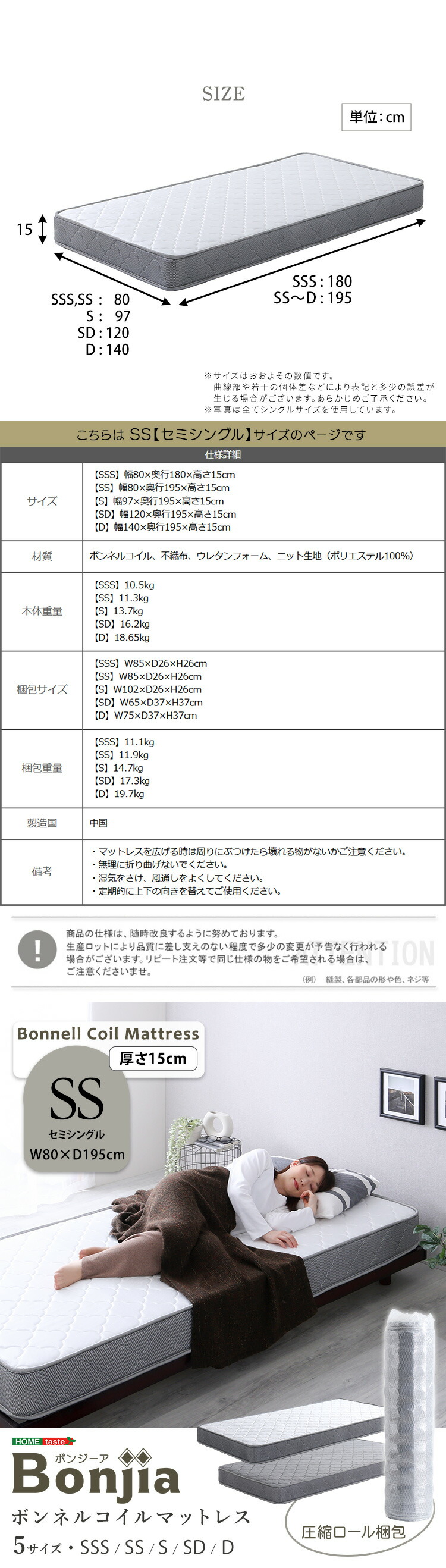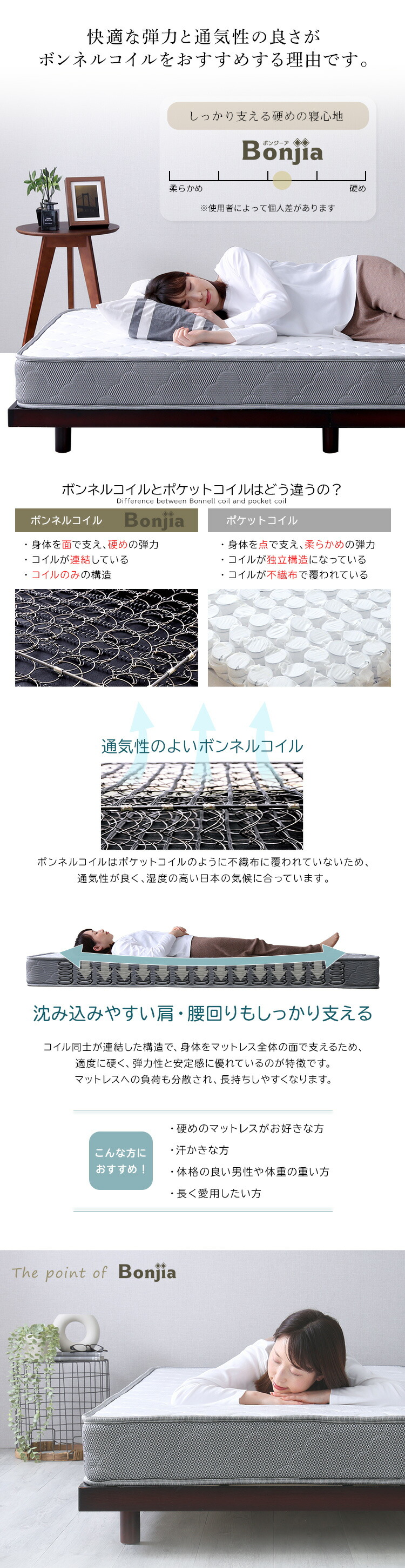 マットレス セミシングル ボンネルコイル 硬め 高反発 【Bonjia-ボンジーア-】 極厚 厚め 丈夫 高反発マットレス 敷き布団 敷布団 ベッドマットレス ノンホルムアルデヒド 布団 寝具 一人暮らし 新生活 【代引不可】[ホワイト]
