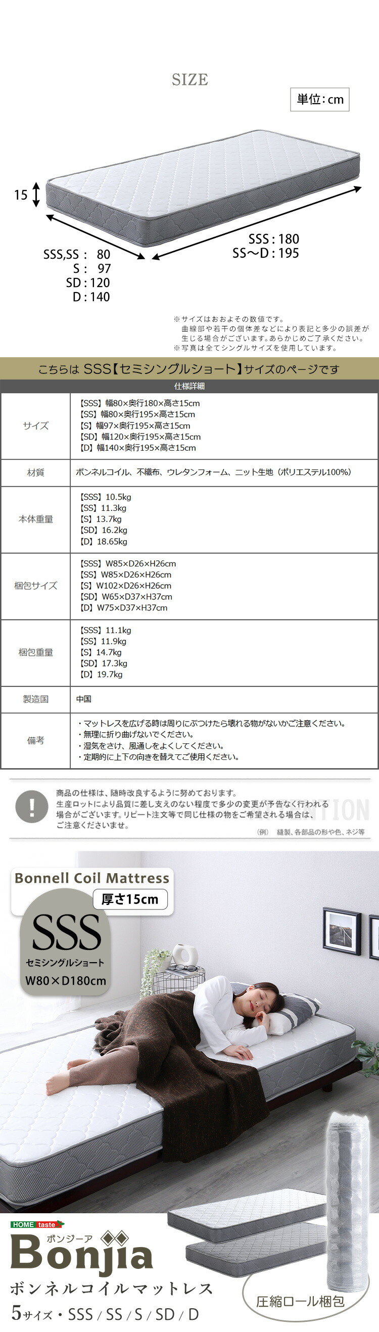 マットレス セミシングルショート ボンネルコイル 硬め 高反発 【Bonjia-ボンジーア-】 極厚 厚め 丈夫 高反発マットレス 敷き布団 敷布団 ベッドマットレス ノンホルムアルデヒド 布団 寝具 一人暮らし 新生活 【代引不可】[ホワイト]