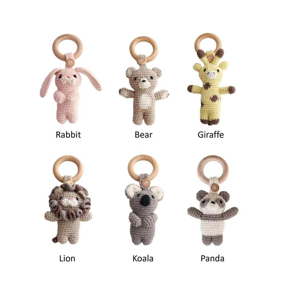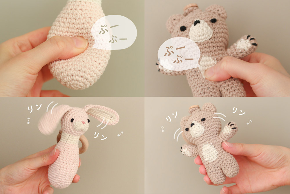 あたたかな手編みのあみぐるみラトル「amimals(アミマルズ)」は、