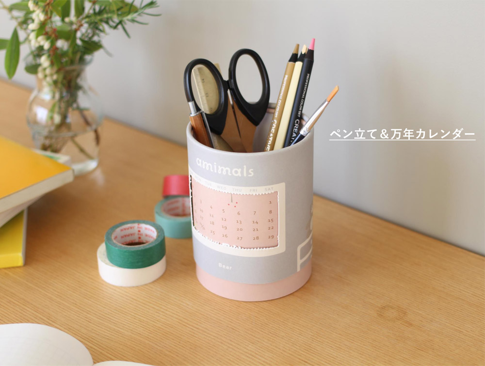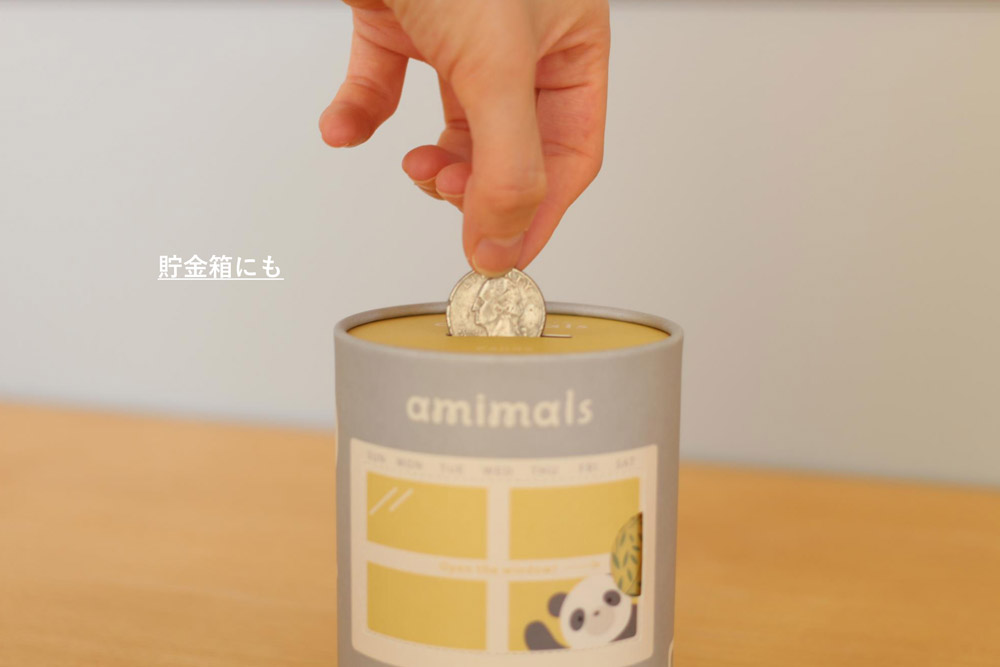 蓋には貯金箱としてもご使用いただける穴が開いており、さらにパッケージ上部の蓋を外すとペン立てとしてもご使用いただけます。