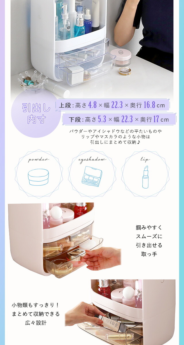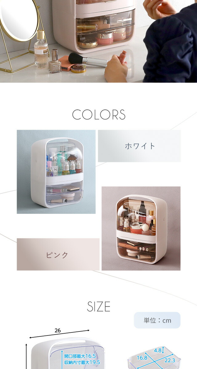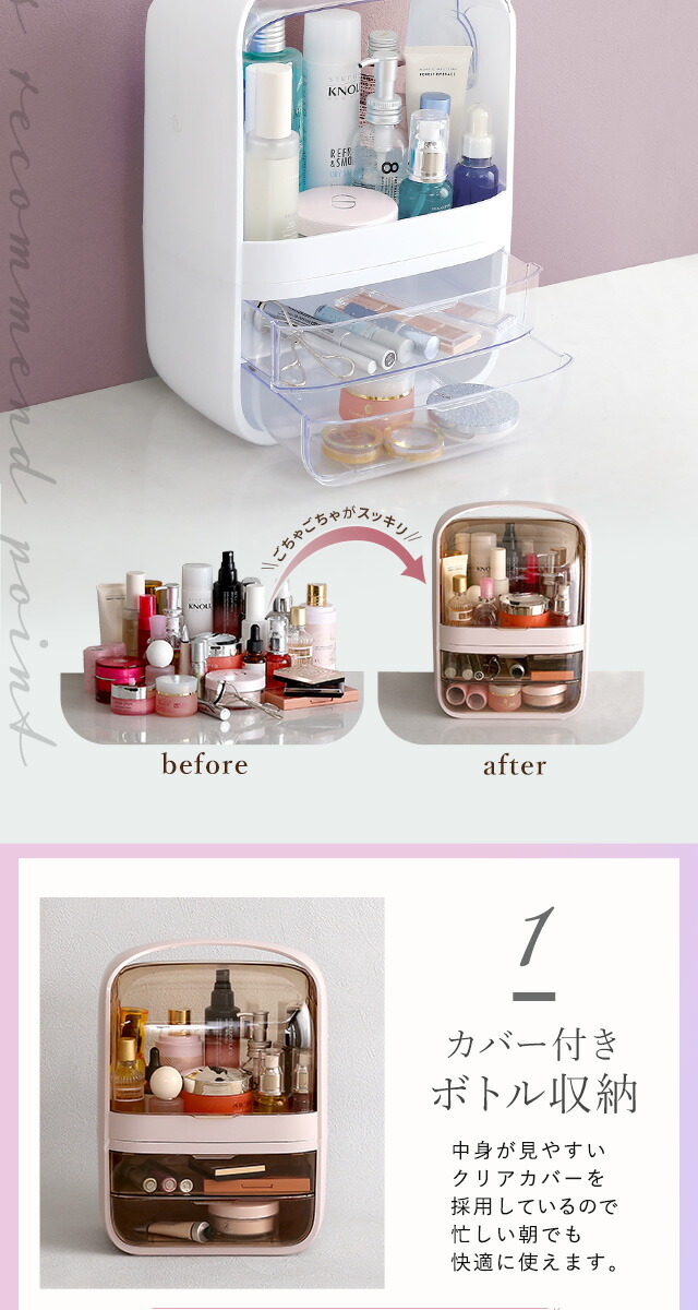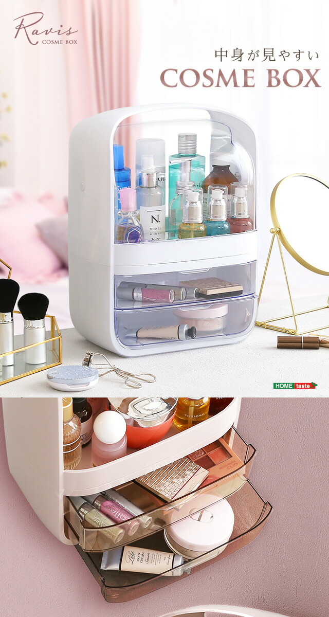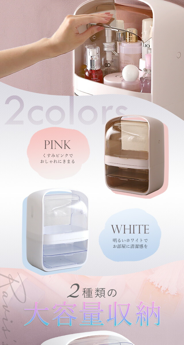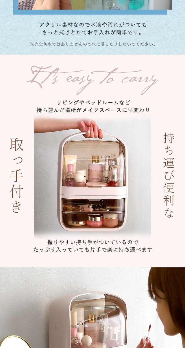 コスメボックス 化粧ボックス 中身が見やすい 【Ravis-ラヴィス-】 大容量 収納 取っ手付き 持ち運び 引出し 収納 防塵防水 軽量 メイクボックス ビューティー 化粧品 かわいい 可愛い 大人 女性 旅行 くすみ 【代引不可】[ピンク]