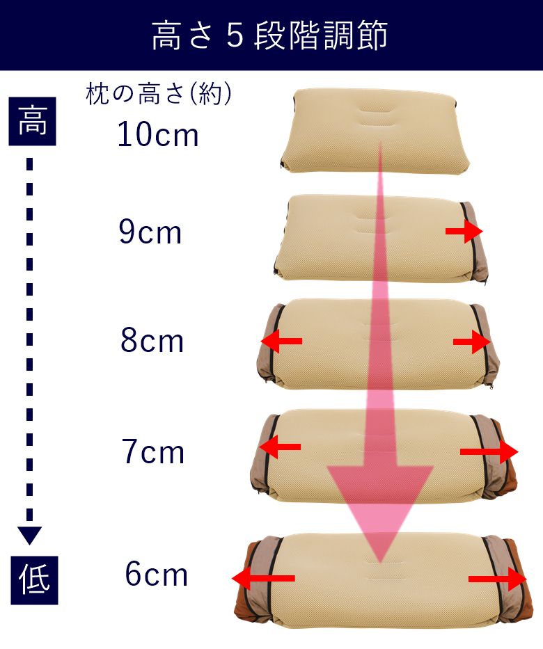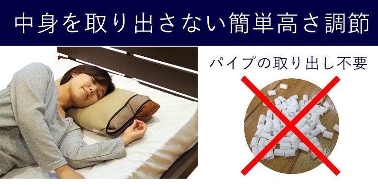 ぜひこの枕のスムーズな高さ調整を体感して下さい。