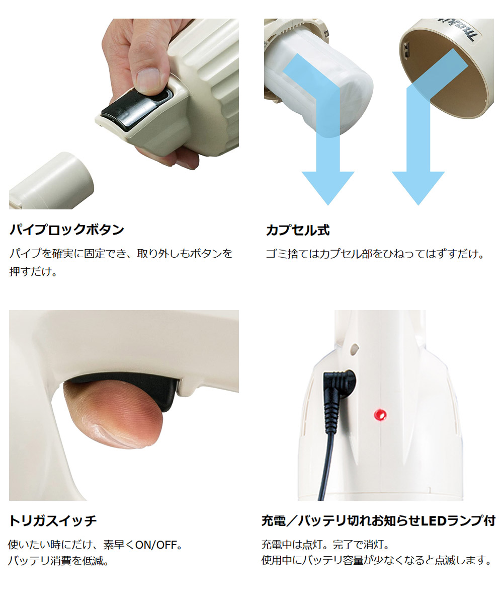 使用時間アップ&軽量で使いやすい Li-ion10.8Vバッテリ内蔵式、カプセル式+トリガスイッチモデル