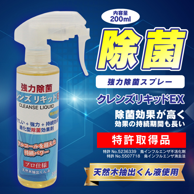 クレンズリキッドEX 除菌スプレー 200ml 安心の日本製 アルコール除菌 強力除菌 携帯用 除菌 ウイルス対策