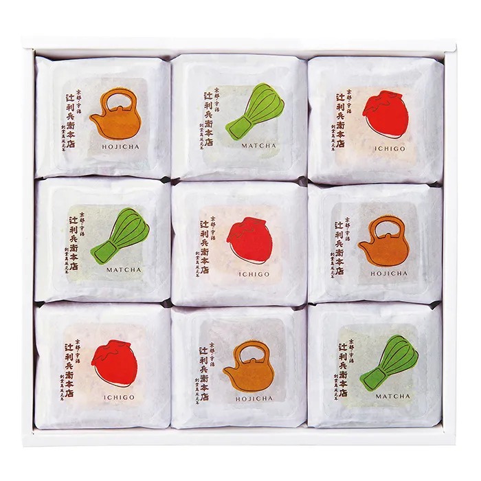 辻利兵衛本店 賽の茶 9個 個包装 和 抹茶 ほうじ茶 玄米茶 いちご 苺 抹茶クリーム キューブ型 キューブケーキ プチケーキ しっとり お菓子 焼き菓子 詰め合わせ 93021-04 【代引不可】