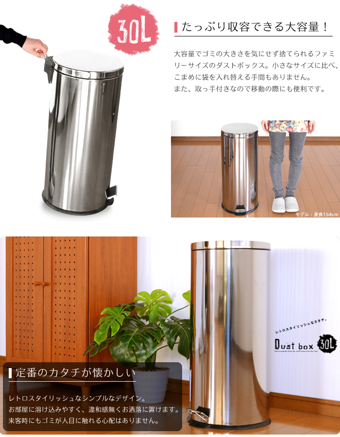 ダストボックス 30L ゴミ箱 ごみ箱 蓋付き フタ付き ふた付き 丸形 円形 スタイリッシュ デザイン フットペダル式 定番 おしゃれ シンプル インテリア 小物 リビング キッチン 寝室 子供部屋 洗面所 お部屋 DST-30L 【代引不可】 母の日