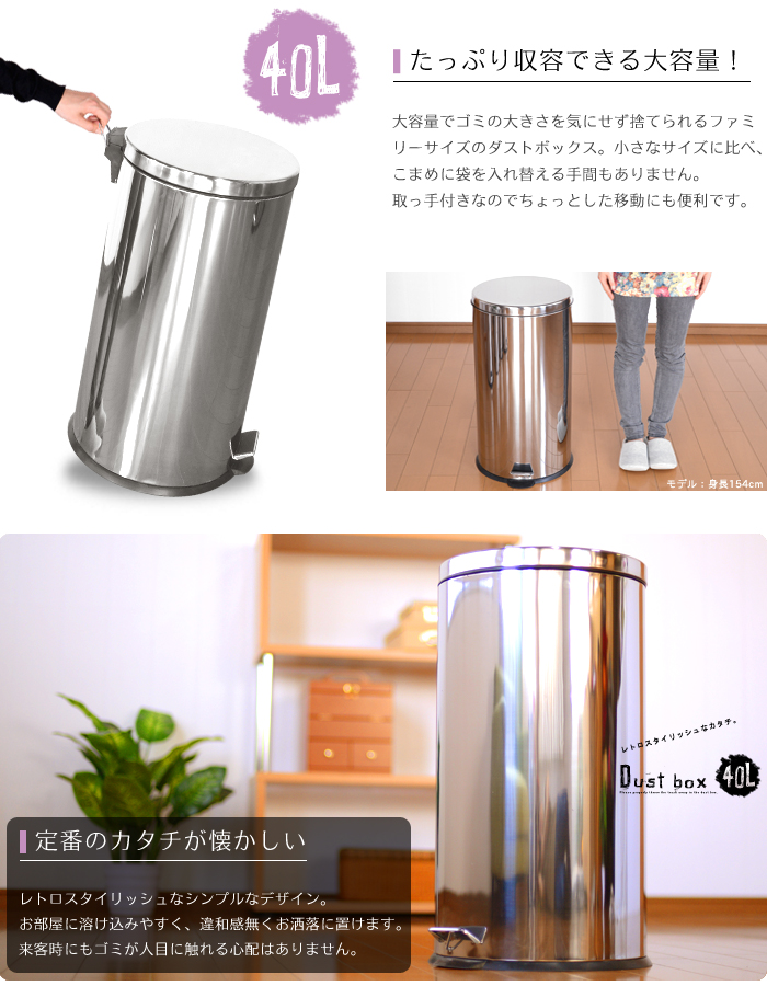ダストボックス 40L ゴミ箱 ごみ箱 蓋付き フタ付き ふた付き 丸形 円形 スタイリッシュ デザイン フットペダル式 定番 おしゃれ シンプル インテリア 小物 リビング キッチン 寝室 子供部屋 洗面所 お部屋 DST-40L 【代引不可】 母の日