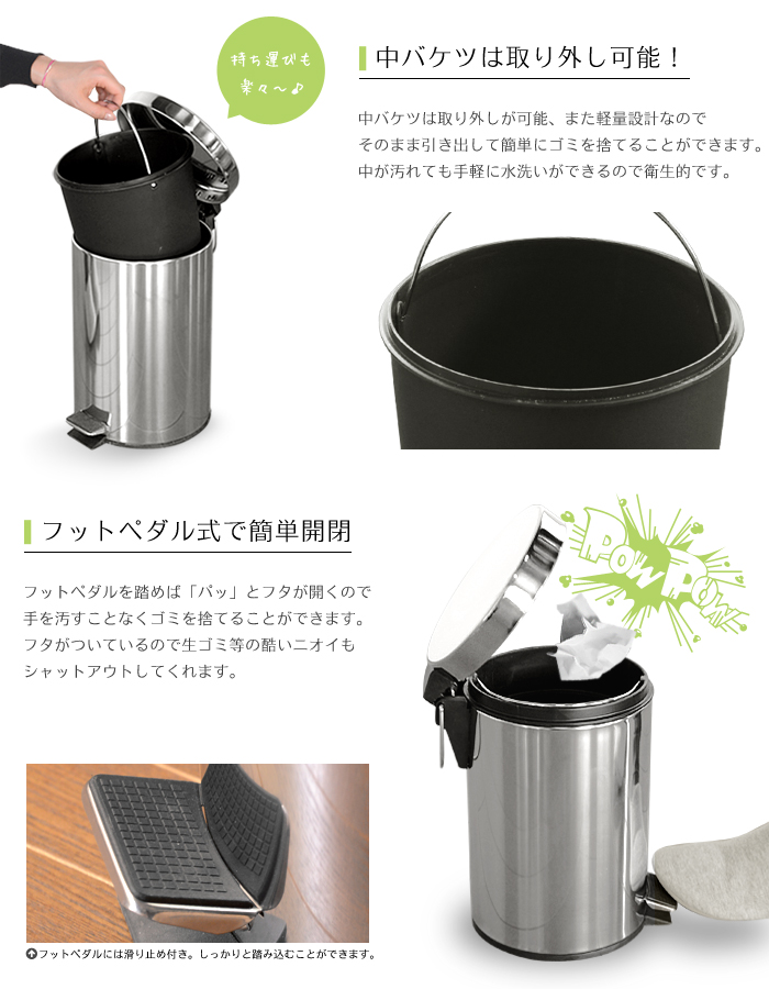 片手でもゴミを捨てられるペダル式です。