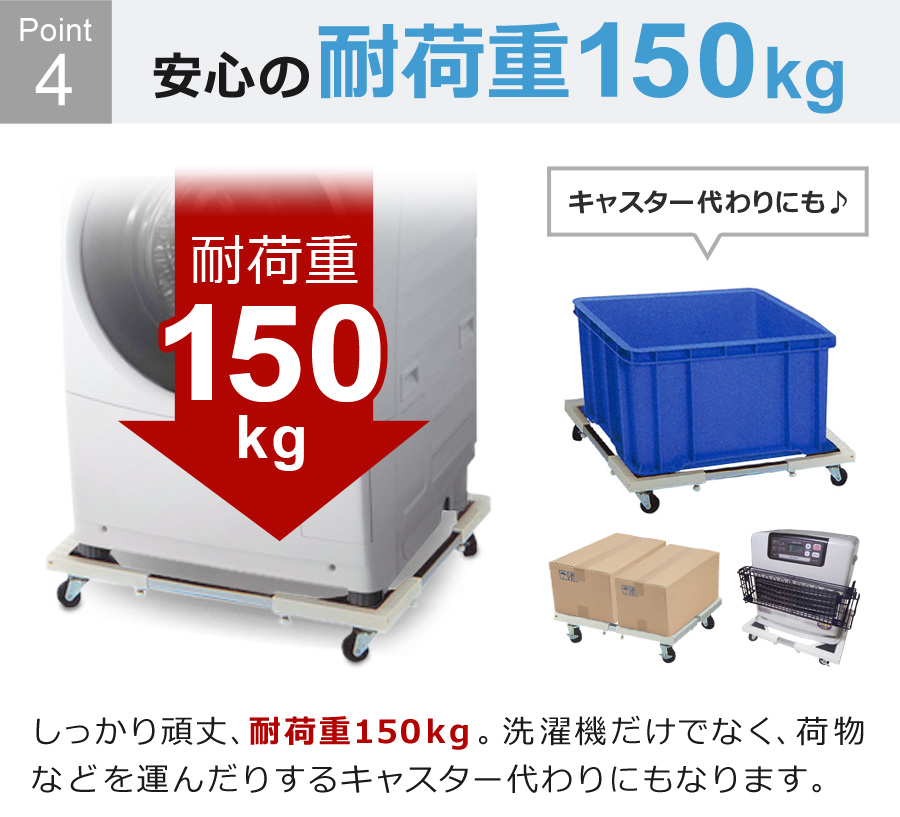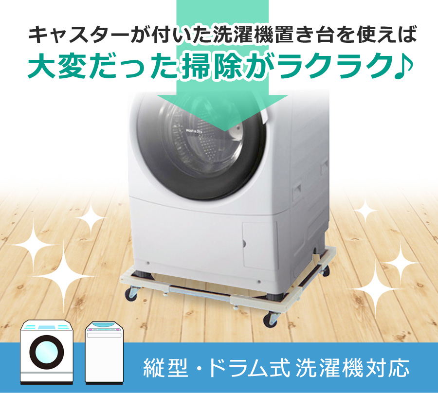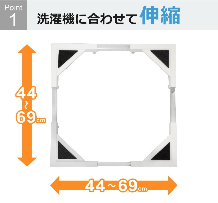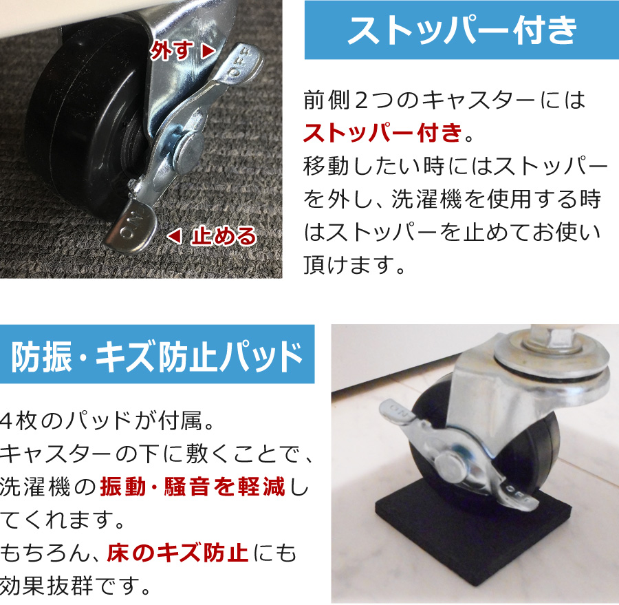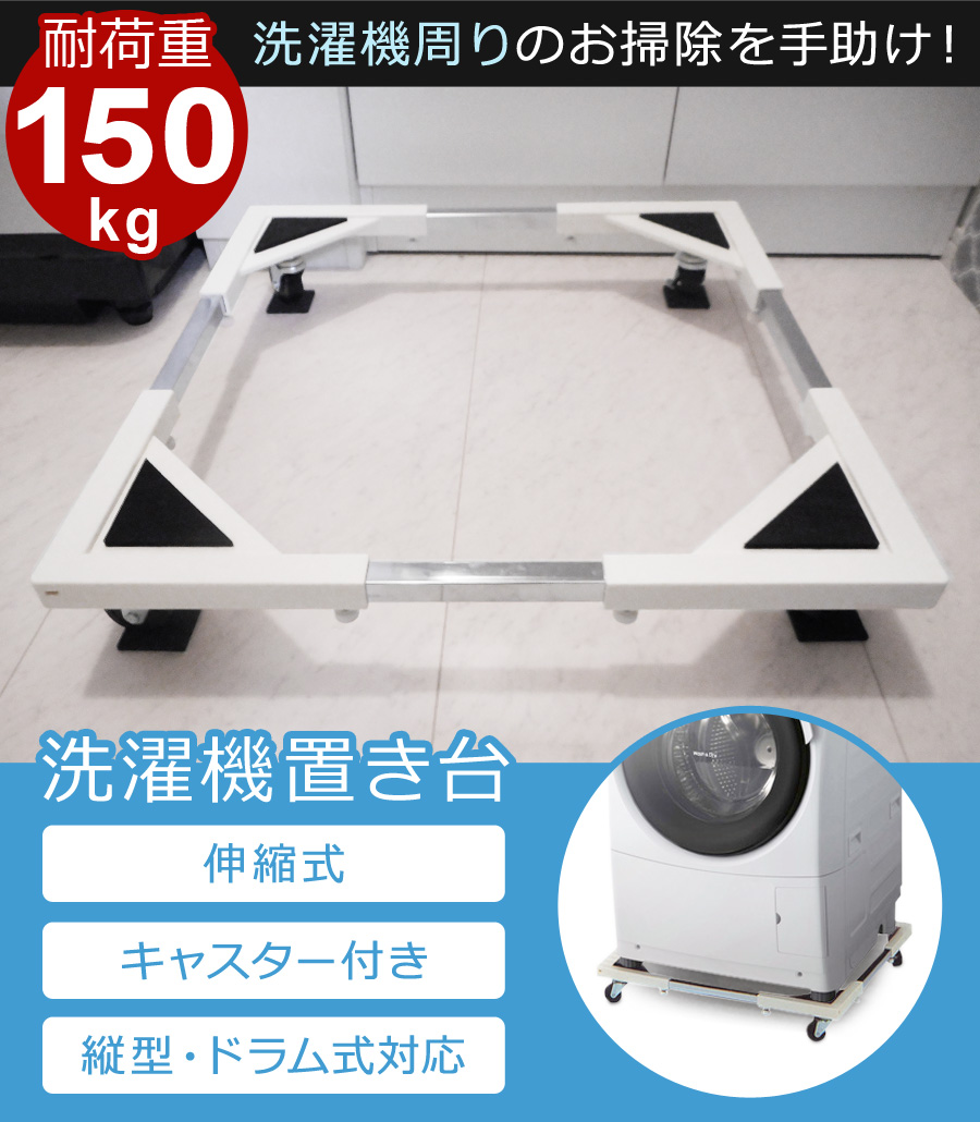 洗濯機置き台 キャスター付き ドラム式対応 耐荷重150kg 防振・キズ防止パッド付き 44~69cm 洗濯機置台 洗濯台 洗濯置き台 冷蔵庫 下 掃除 冷蔵庫台 ストッパー付き 一人暮らし 新生活 SunRuck
