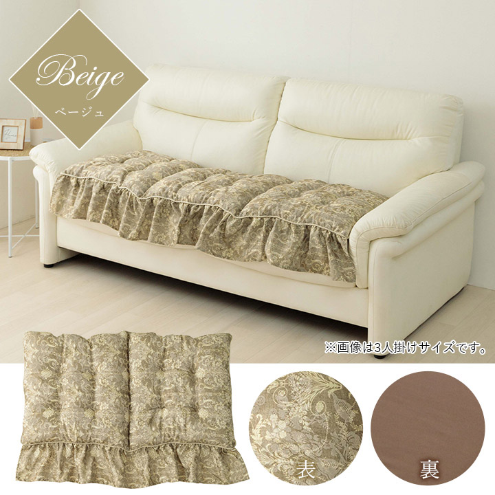 シートクッション 二人掛け ソファ フリル 日本製 洗える 約53×105cm エレガンス 1220890234191[ベージュ]