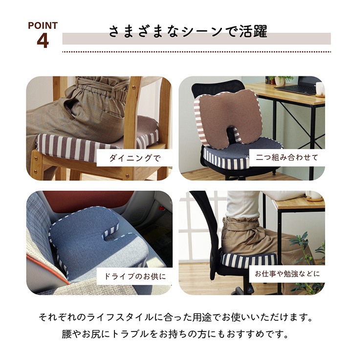 ■ オフィスワークやドライブなど長時間座りっぱなしの時の負担を軽減してくれます。