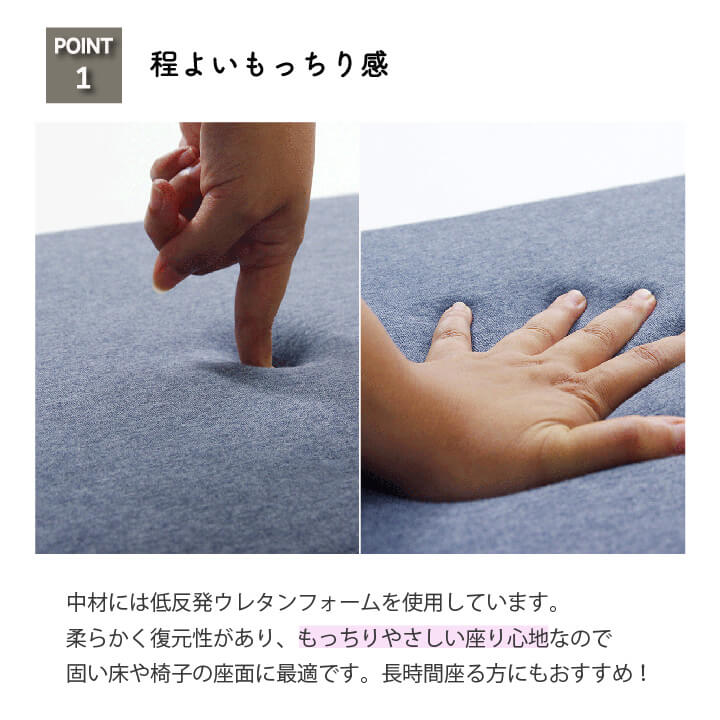 ■ 中材にウレタンフォームを使用しており、もちもちした柔らかなタッチ感が特徴です。