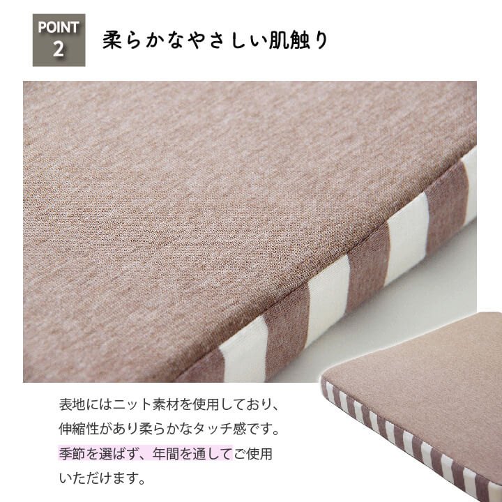 伸縮性があり、季節を選ばず年間ご使用いただけるようにしました。
