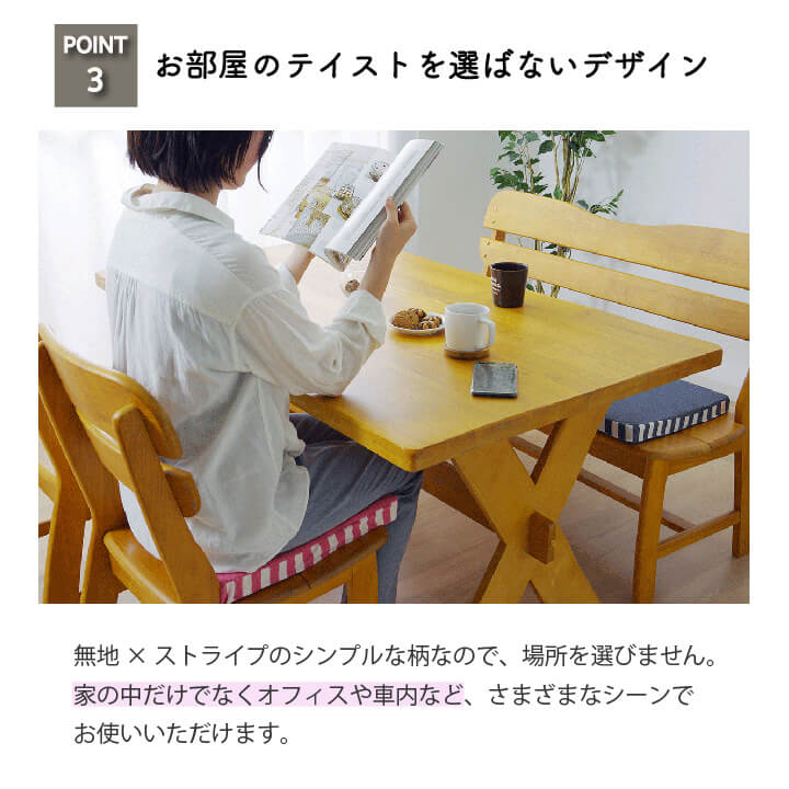 検索キーワード: チェアクッション チェアパッド 椅子用 いす用 シートクッション 椅子クッション 低反発クッション 四角 スクエアクッション 正方形 フロアクッション チェアーパッド チェアパット シンプル 無地 ストライプ柄 かわいい 可愛い テレワーク オフィス 一人暮らし ひとり暮らし