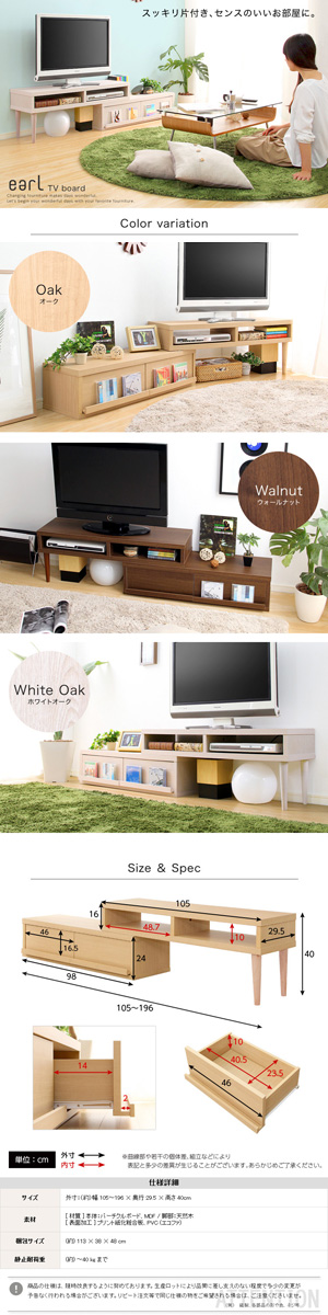 完成品伸縮式テレビ台「アール-EARL」(コーナーTV台・ローボード・リビング収納)[オーク]