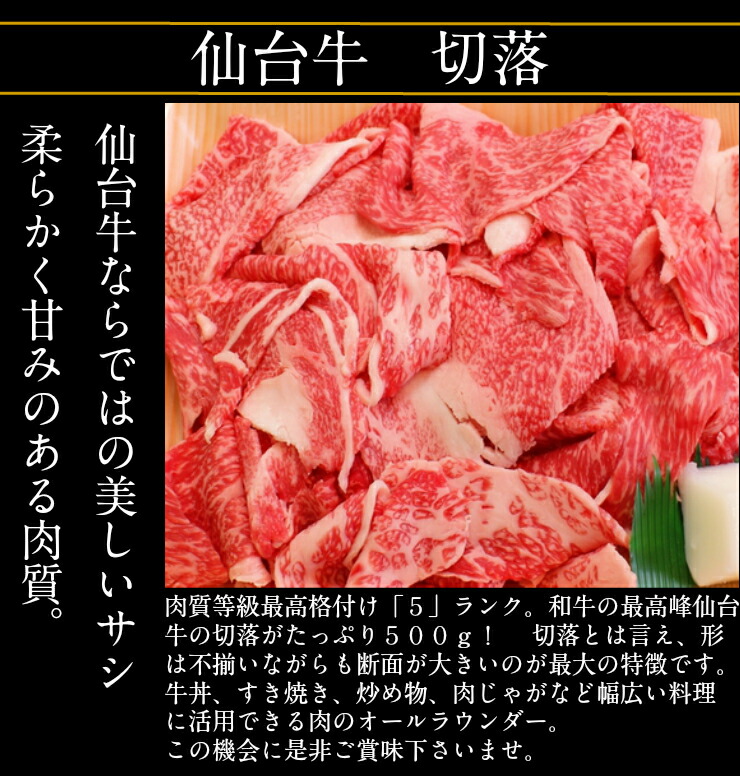 仙台牛 黒毛和牛 A5 B5 切り落とし 500g 宮城県産 牛肉 肉 和牛 国産 小分け 食品 お歳暮 御歳暮 お中元 御中元 内祝い プレゼント ギフト 【代引不可】