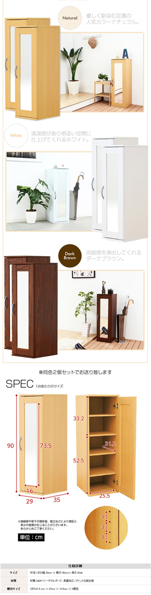 ミラー付きコンパクトシューズラック(2個セット)【-Refre-リフレ】(下駄箱・シューズボックス)