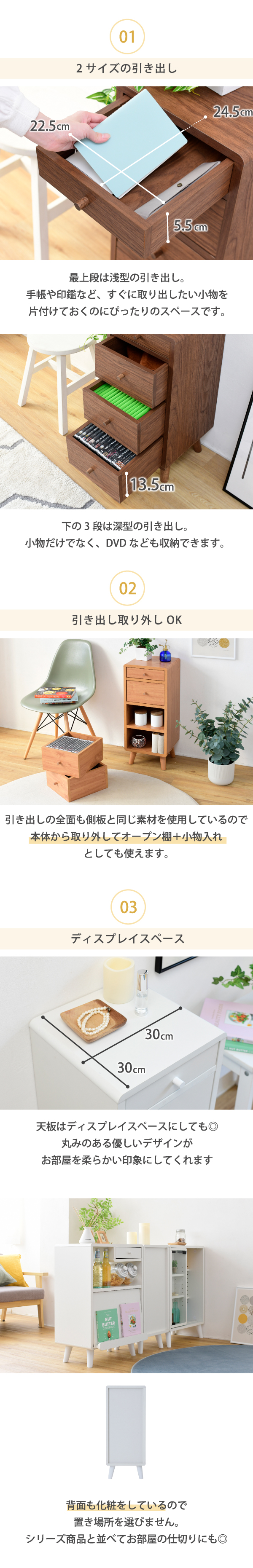(引き出し2?4段目)幅22.5×奥行24.5×高さ13.5(有効:14)cm