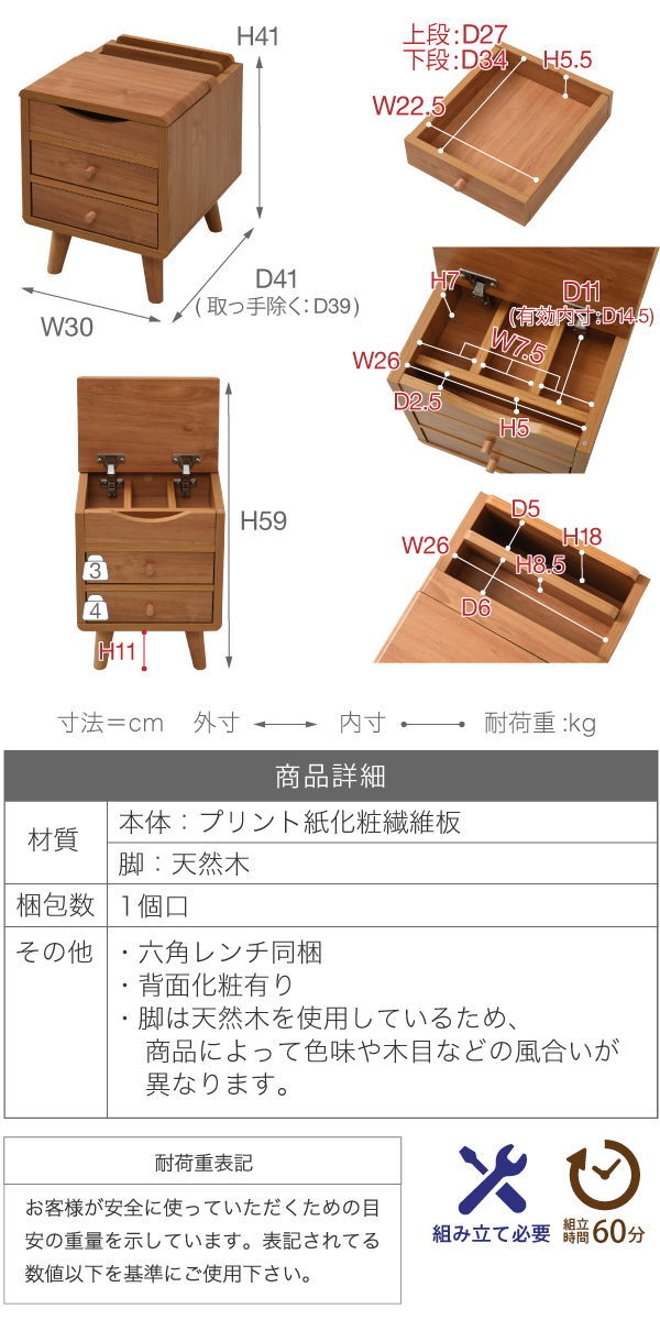 チェスト サイドチェスト スリム 幅30 奥行39 コンパクト 引き出し 収納 リビング収納 ラック マガジンラック テーブル 脚付き 北欧 木目 木製 一人暮らし 【代引/同梱不可】[ナチュラル]
