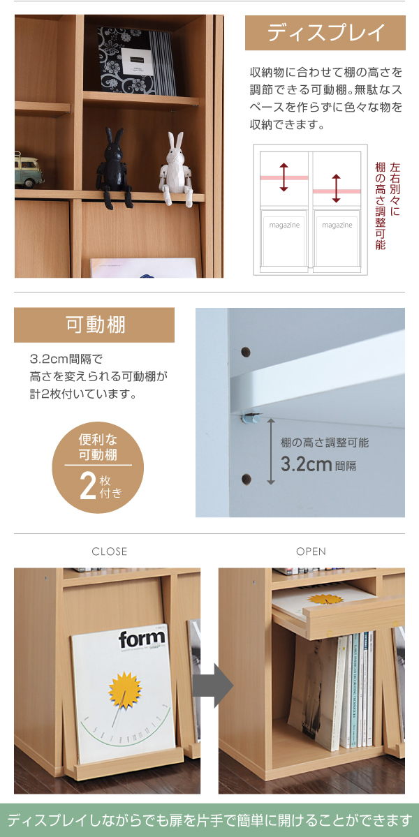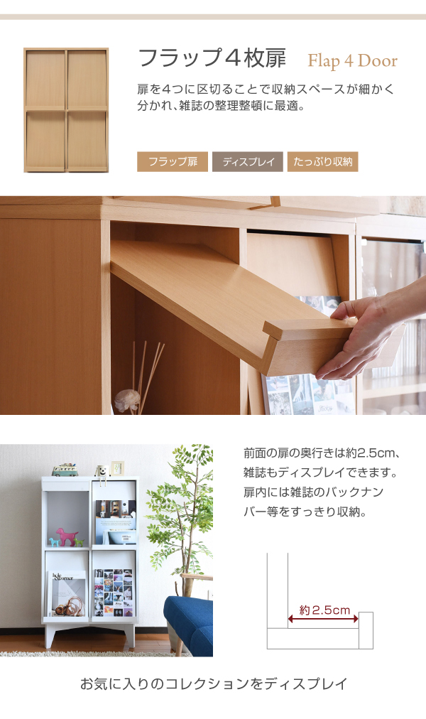 6BOXシリーズ ディスプレイラック フラップ2枚扉オープン 別売 足ベース有り FR-048-NA