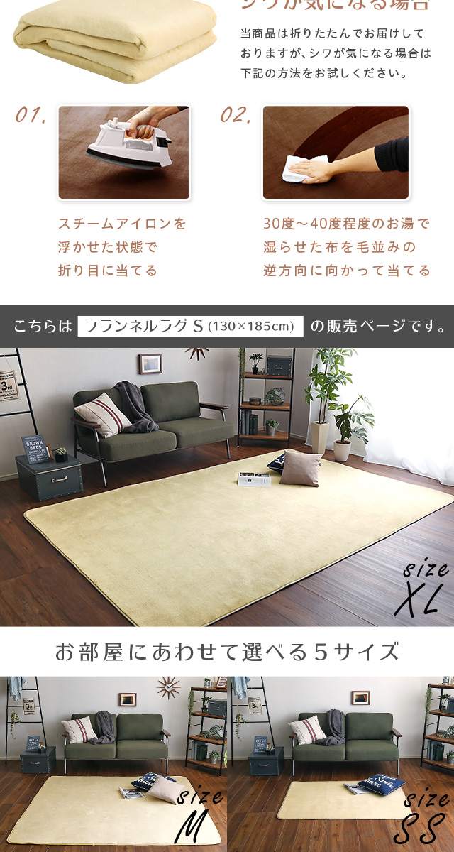 高密度フランネルマイクロファイバー・ラグマットSサイズ(130×185cm)洗えるラグマット|ナルトレア 新生活[ブラウン]
