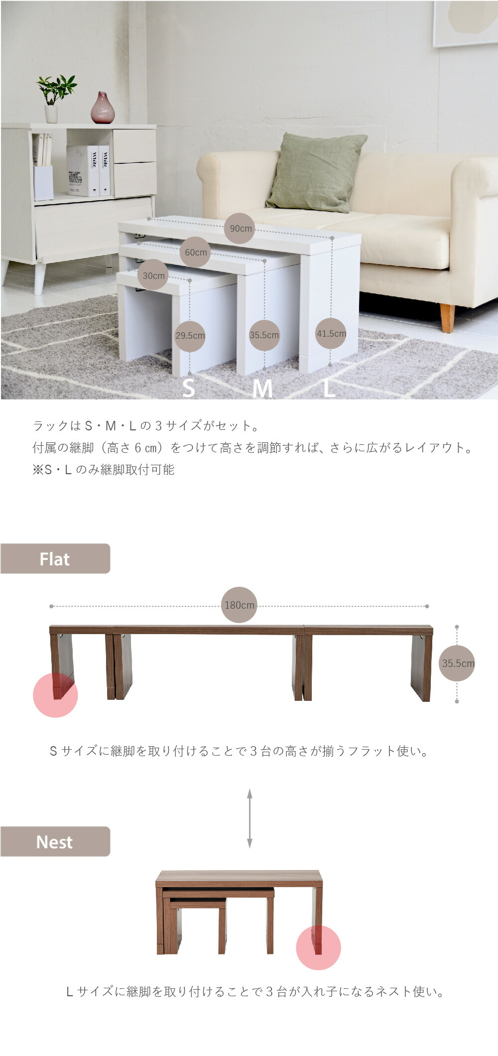 (L)幅90×奥行29.5×高さ35.5(継脚41.5)cm