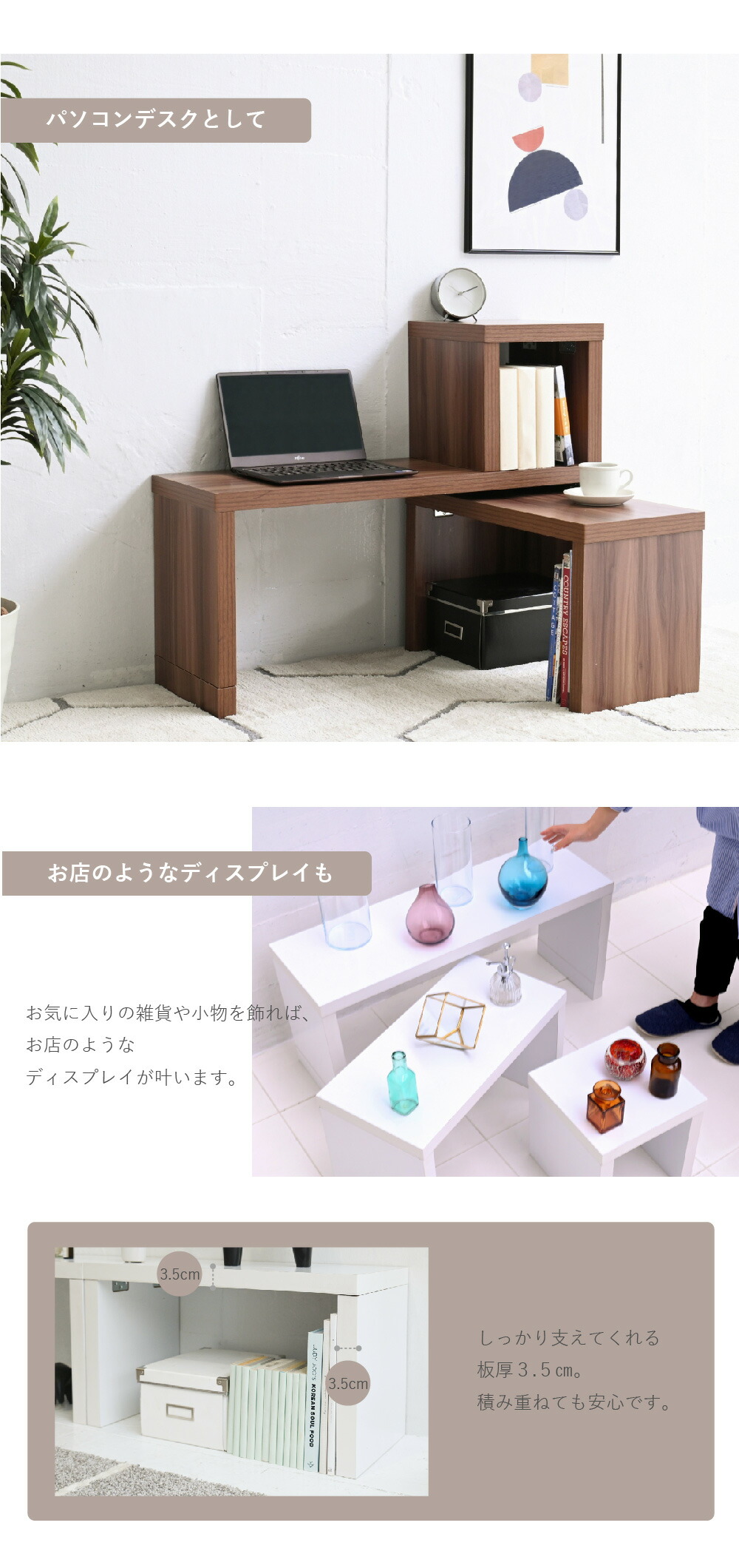 入れるテーブル マルチレベルテーブル コーヒーテーブル 小さめ 本棚 組み合わせ ディスプレイラック スリム シェルフ 間仕切り 飾り棚 ディスプレイ 什器 ひな壇 コの字型ラック 木製 ローテーブル 小さい ミニ コンパクト モダン 長方形 おしゃれ 一人暮らし ひとり暮らし 低い 低め 四角 ロー ロータイプ ウッド 拡張 階段ラック コンパクトデスク 長い 細長い 変形 収納 テーブル セット 組み合わせ 自由 薄型 3段ラック 間仕切り リビングラック コの字 軽量 シェルフ台 ディスプレイ棚 ソファ サイドテーブル コの字ラック 幅 30 60 90幅 120幅 幅150