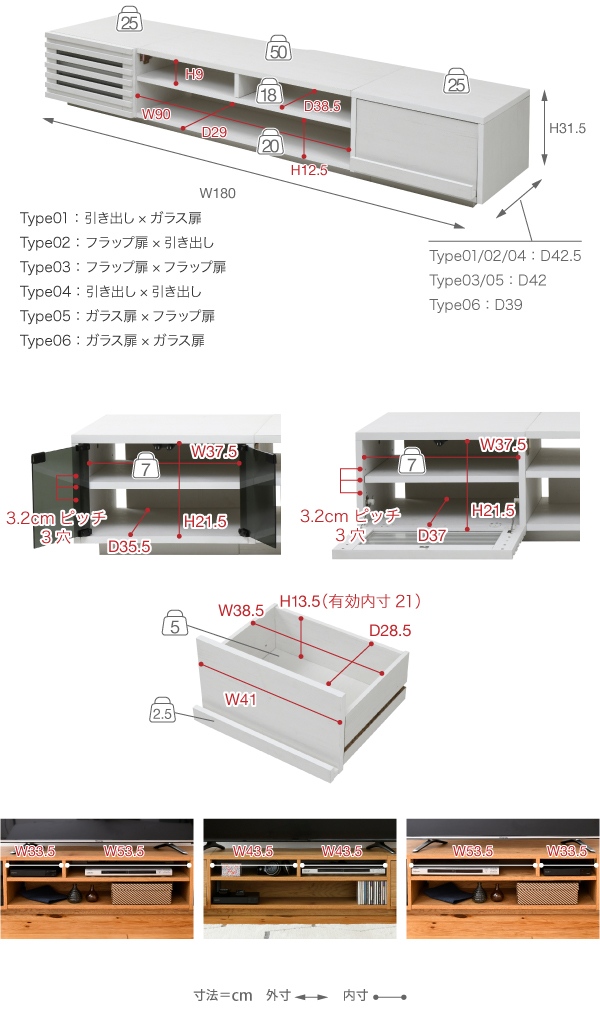 (type.01/02/04)幅180×奥行42.5×高さ31.5cm