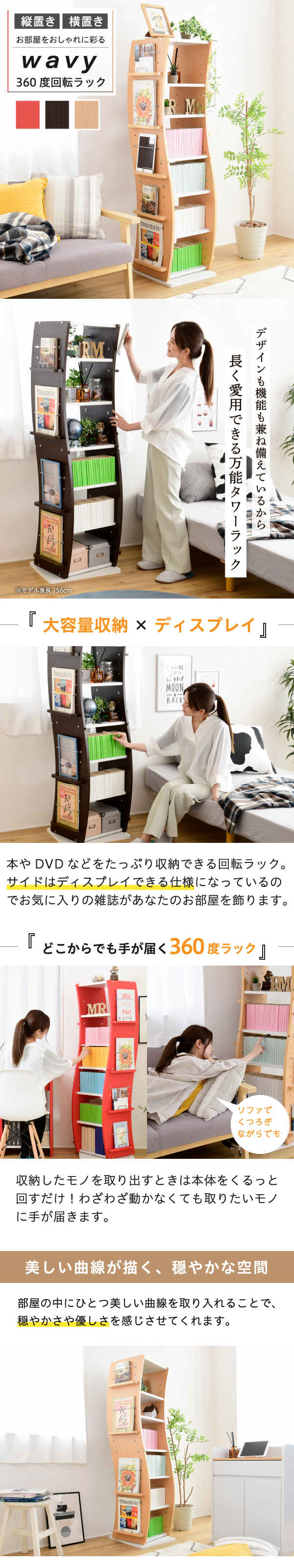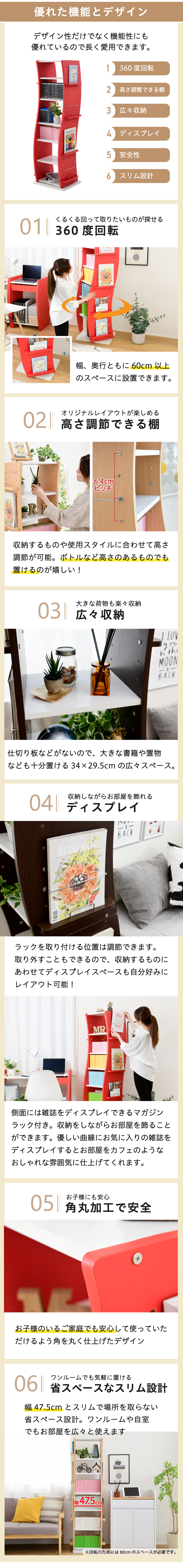 多目的ラック 書棚 回転コミック 収納 本収納 タワー 360度 ブックシェルフ 回転式コミックラック オープンラック おしゃれ 木製 白 ダークブラウン レッド 回転式 おすすめ